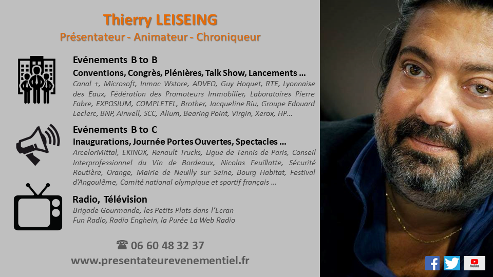 Thierry LEISEING est un présentateur d'événements, animateur d'événements, speaker événementiel.